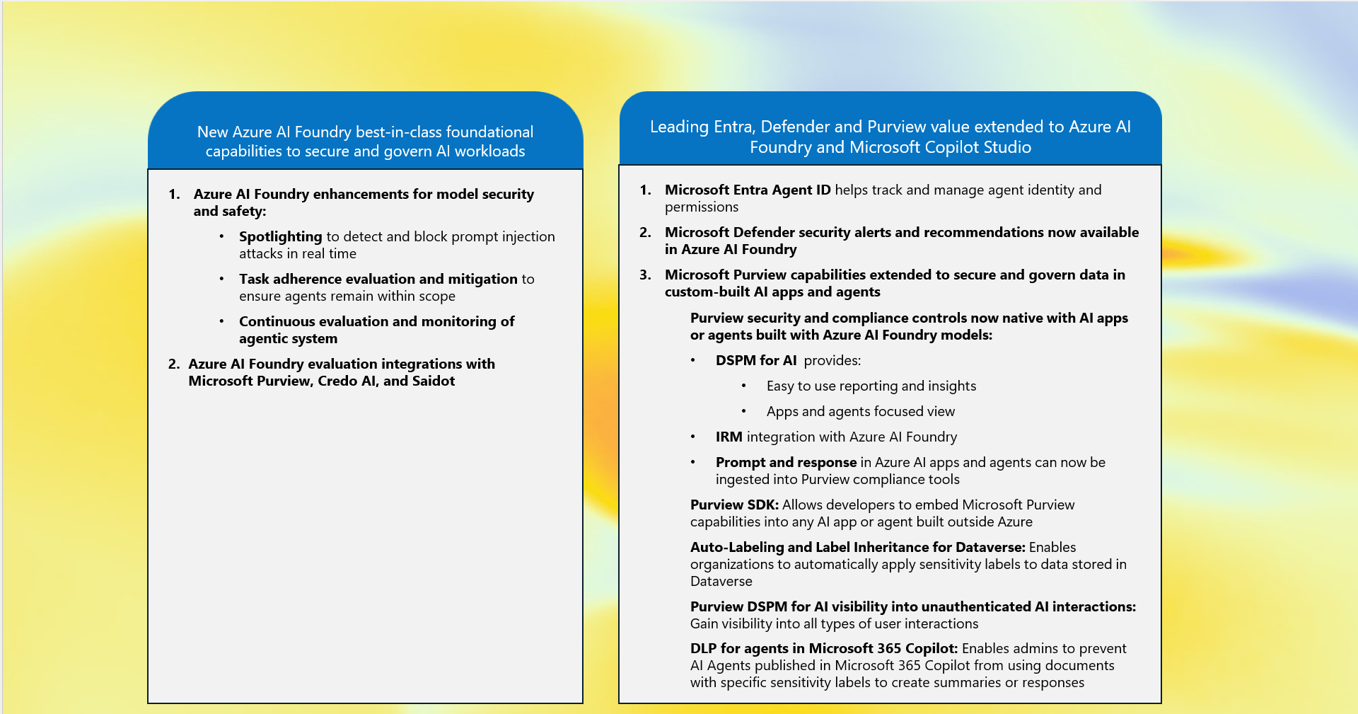 - Integrate with Microsoft Defender, Entra, and Purview for identity, risk, and compliance management
